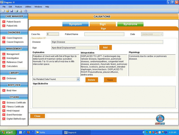 • Sign: On input of a clinical sign in a patient, the