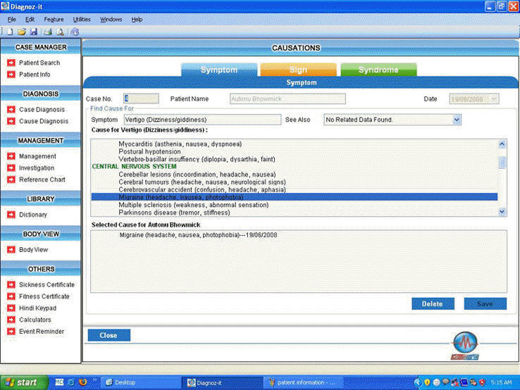 Helps user in Diagnosing the cause of Disease on the basis of